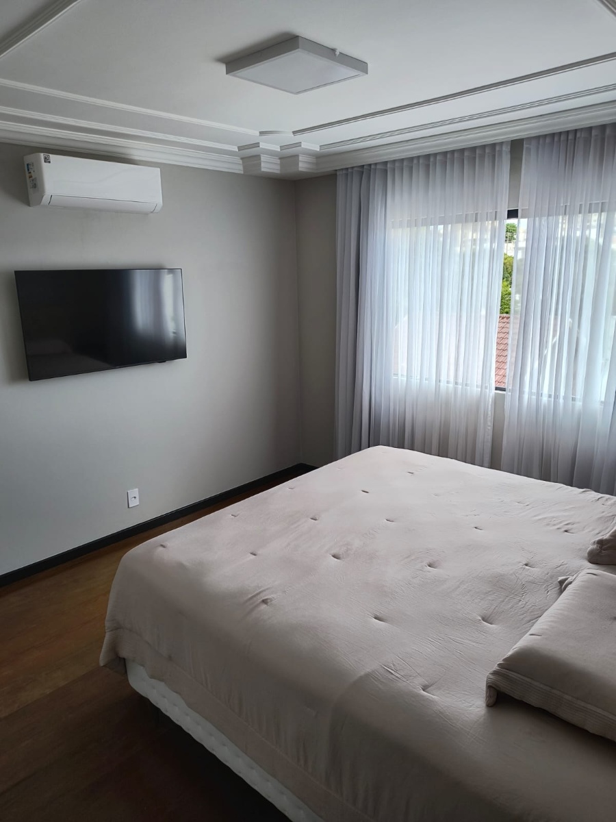 🏡 Uma residência de fino acabamento com ambientes amplos e bem distribuídos. Pavimento térreo com sala de estar, sala de TV, sala de jantar, cozinha, 04 dormitórios sendo 01 suíte, banheiro social, lavabo, jardim de inverno, 02 vagas de garagem cobertas e 02 vagas descobertas. No subsolo da residência mais sala de TV, sala de estar, cozinha com móveis planejados, despensa, 01 dormitório, lavanderia, banheiro social, área gourmet com churrasqueira e amplo jardim com entrada independente.
