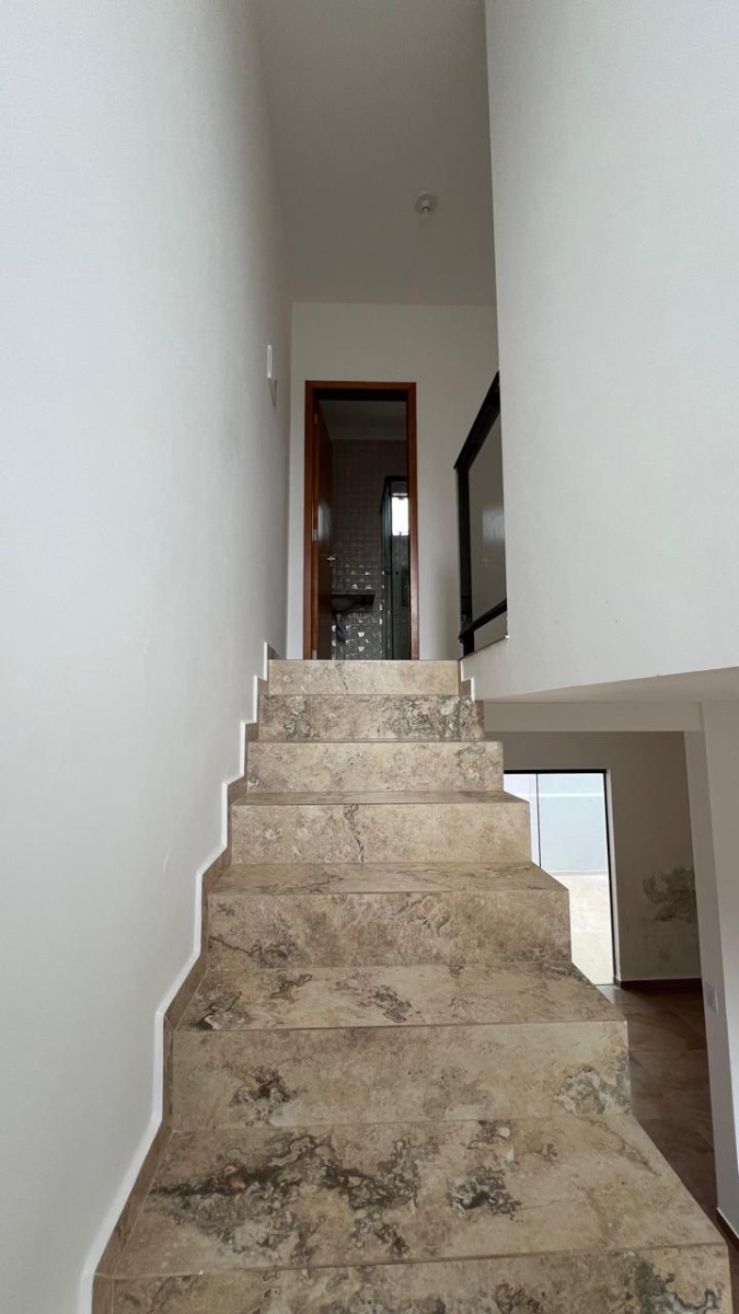 🏡 Um sobrado em alvenaria contendo no piso superior 03 quartos sendo 01 suíte ampla com sacada e banheiro social, sendo no piso térreo 01 ampla sala dividida em 02 ambientes, 01 cozinha americana com sala E 02 amplas vagas de garagem.