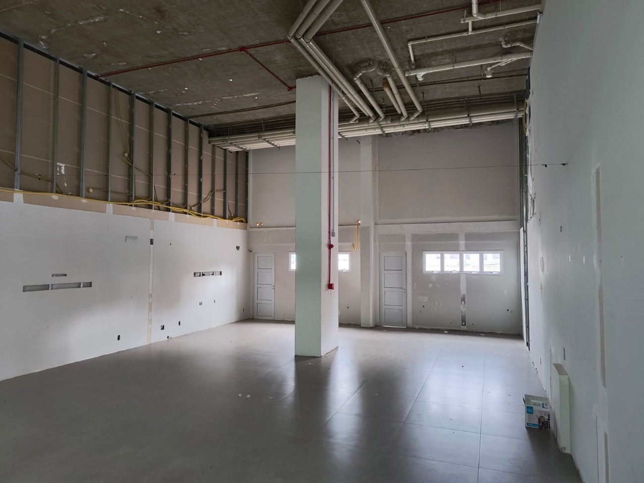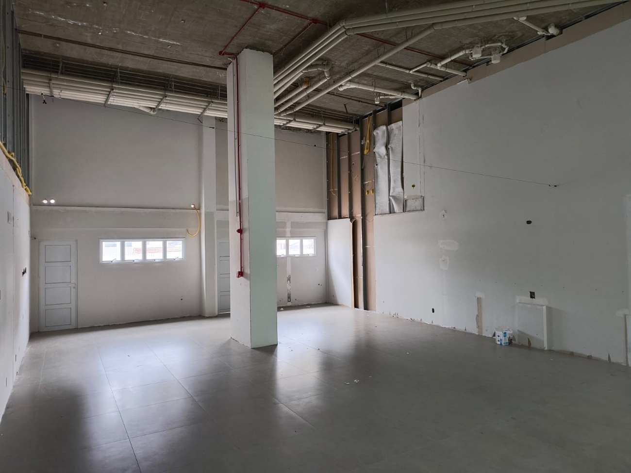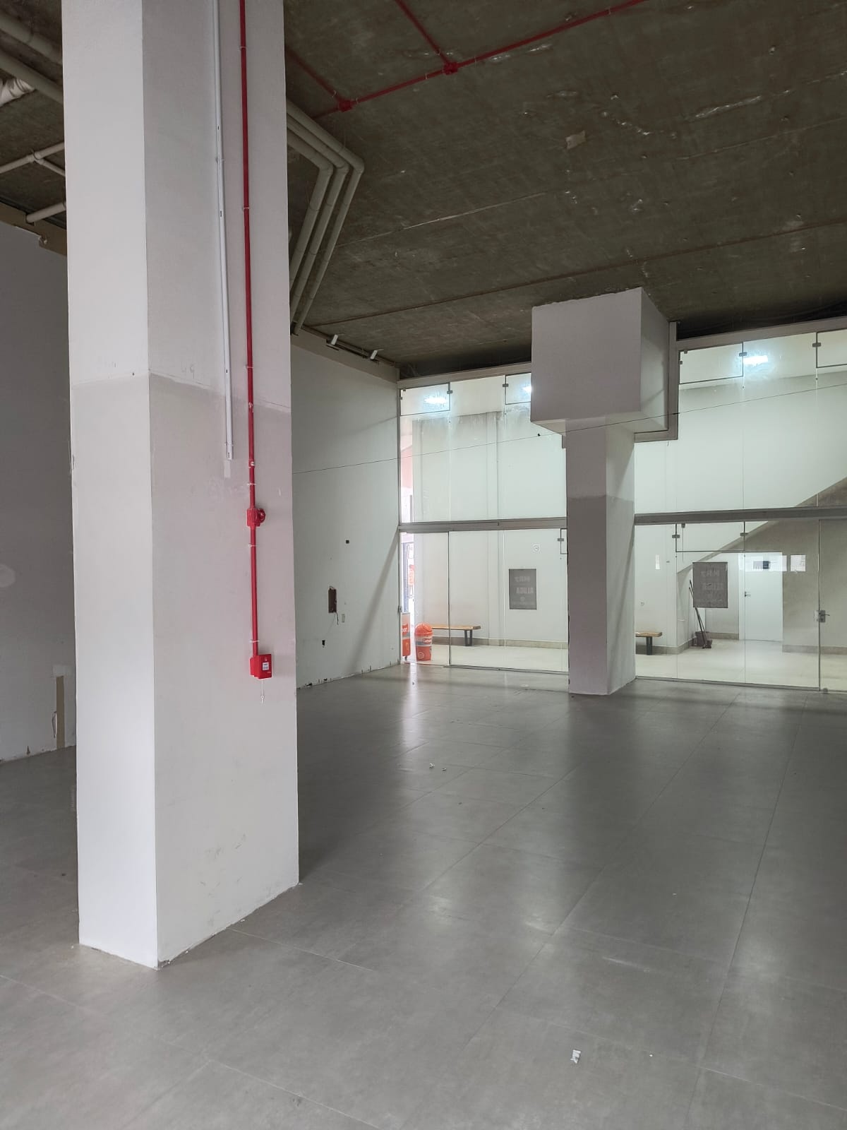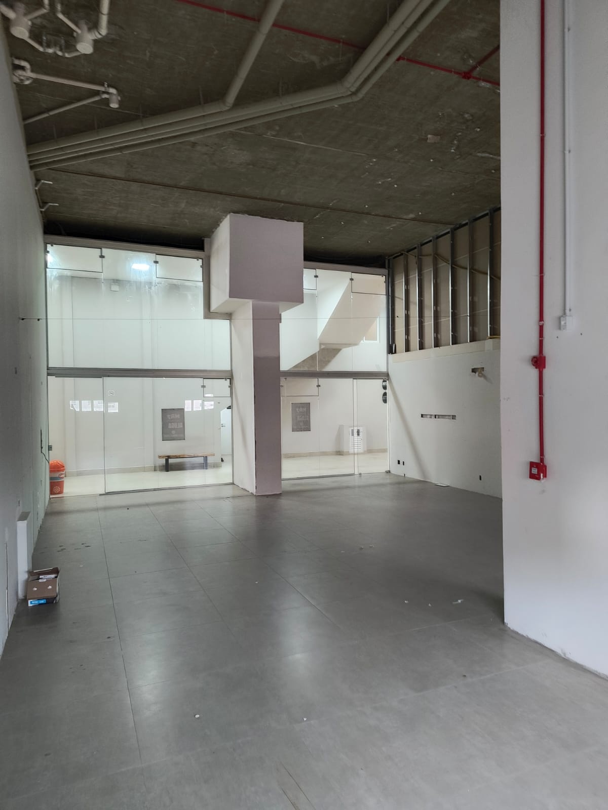 Uma excelente sala comercial térrea com pé direito duplo e terraço duplo.