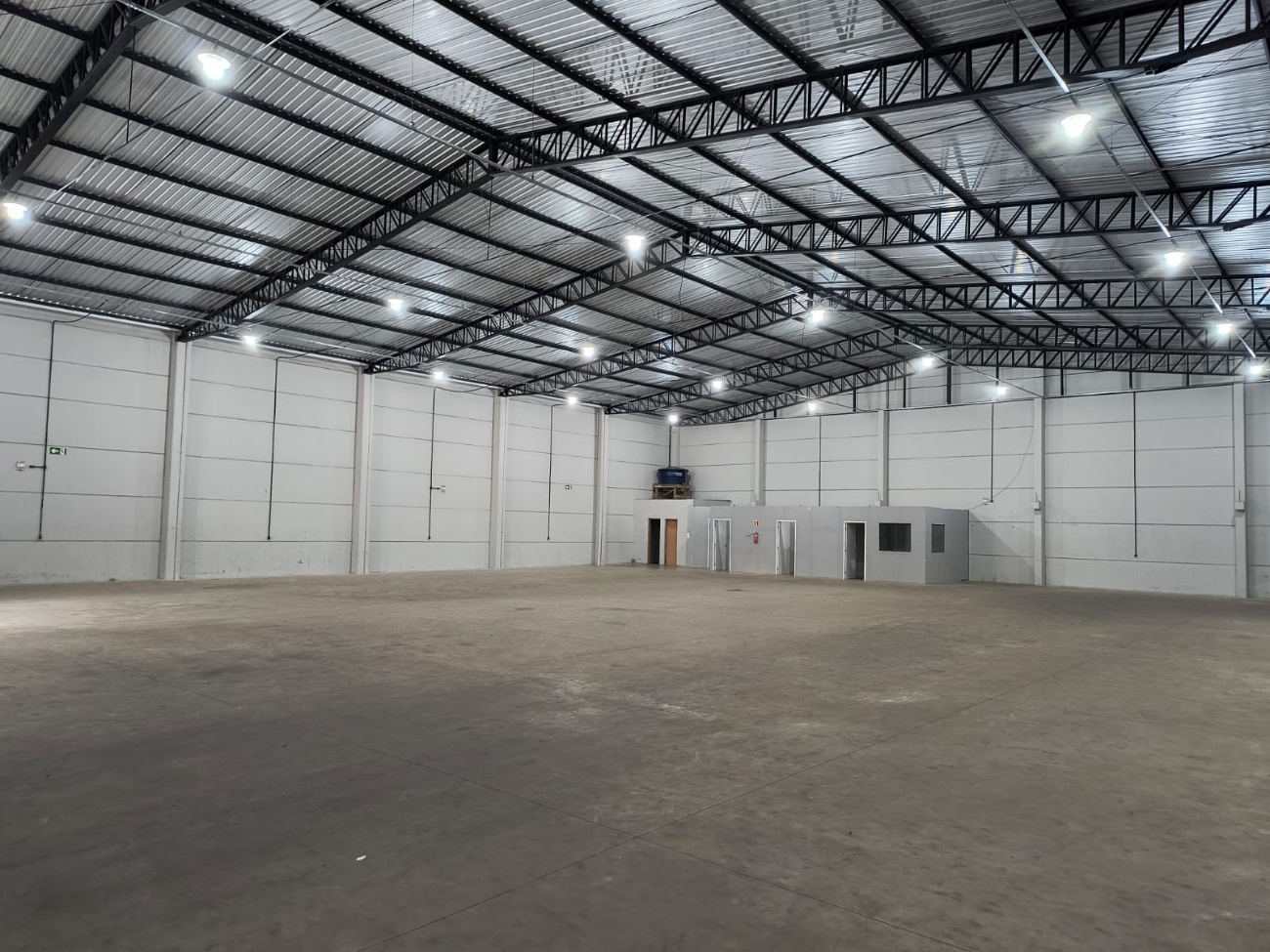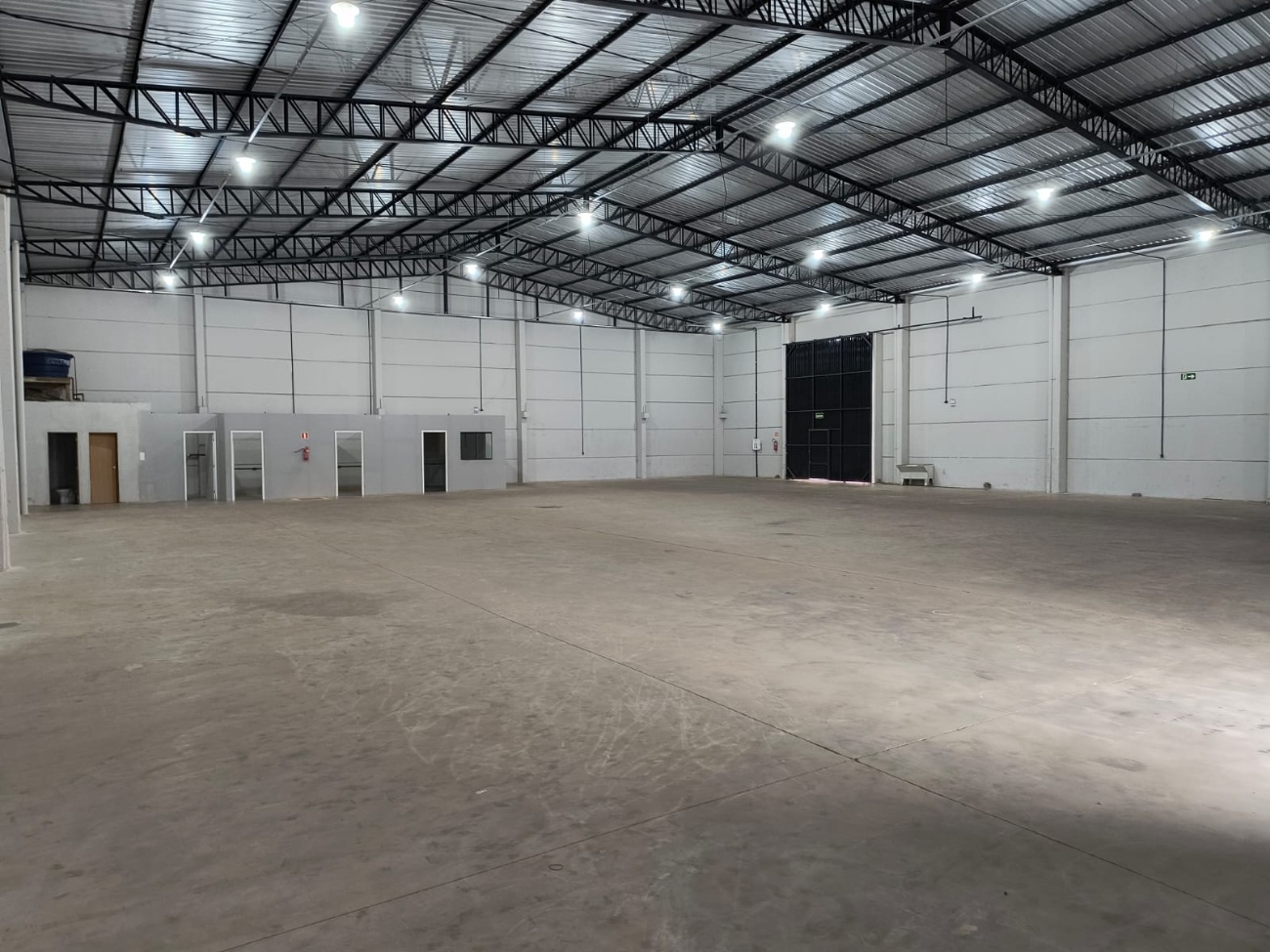 🏢Um amplo barracão comercial com piso reforçado contendo 03 escritórios, 02 banheiros, lavanderia e 03 portões de entrada sendo 02 basculantes.